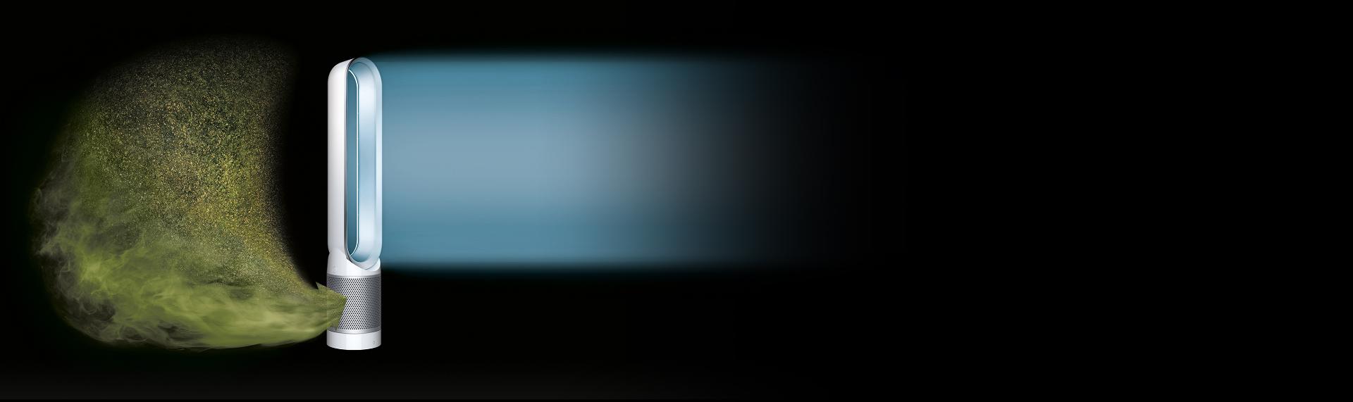 بفضل تكنولوجيا Air MultiplierTM والذبذبة السلسة، تَضخ المروحة تيار هواء مُنقّى طويل المدى وتقوم بتوزيعه في المكان.