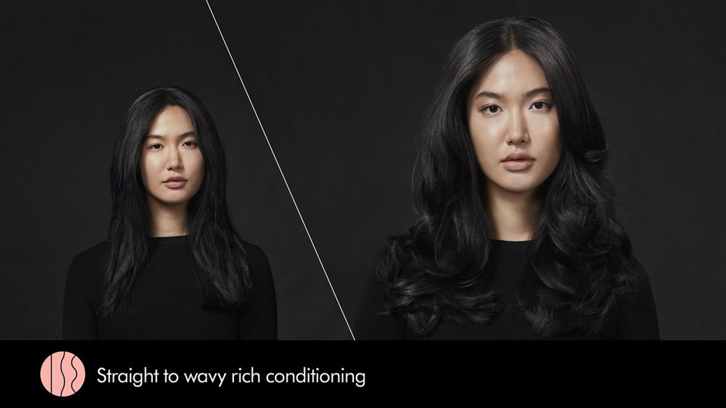 Dyson Chitosan™ Pre-style cream Straight to wavy rich conditioning is developed for hair that’s naturally straight, slightly wavy, or has defined S-wave shapes. With a richer blend of conditioning agents, including castor seed and argan oils, it is best suited to thicker hair strands, and those that need more intensely nourishing ingredients.